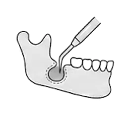 - Kleine Zysten: Wir entfernen das entzündete Gewebe vollständig. Der entstandene Hohlraum füllt sich natürlich mit einem Blutkoagel und verknöchert anschließend von selbst.